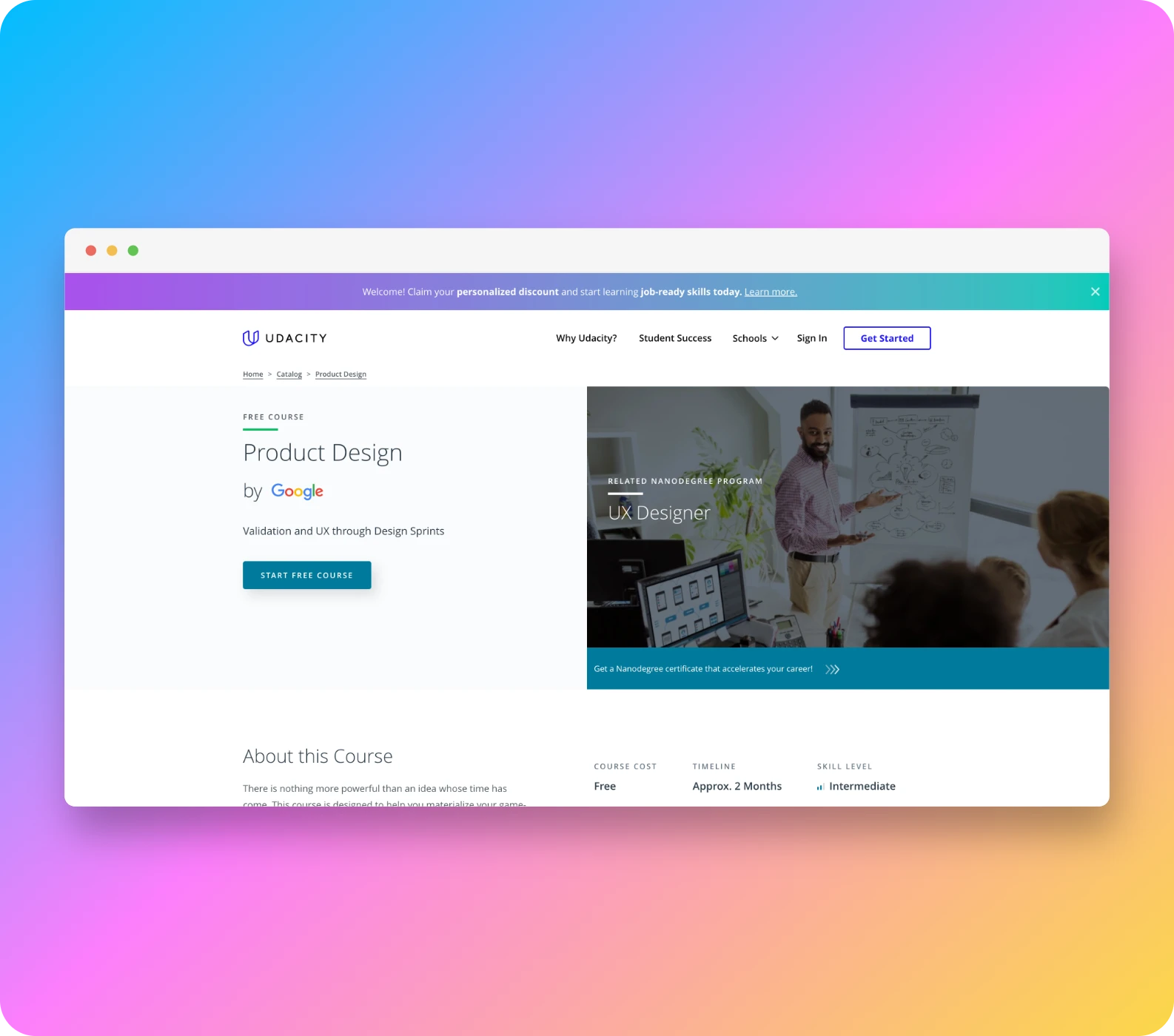 This course will help you materialize your game-changing idea and transform it into a product you can build a business around. Product Design blends theory and practice to teach you product validation, UI/UX practices, Google's Design Sprint, and the process for setting and tracking actionable metrics. Discover the course on Udacity to learn more about product design.